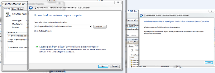 Just bought your amazing a Micro Maestro 6-Channel, but can’t install driver on Windows 7 64 bit…