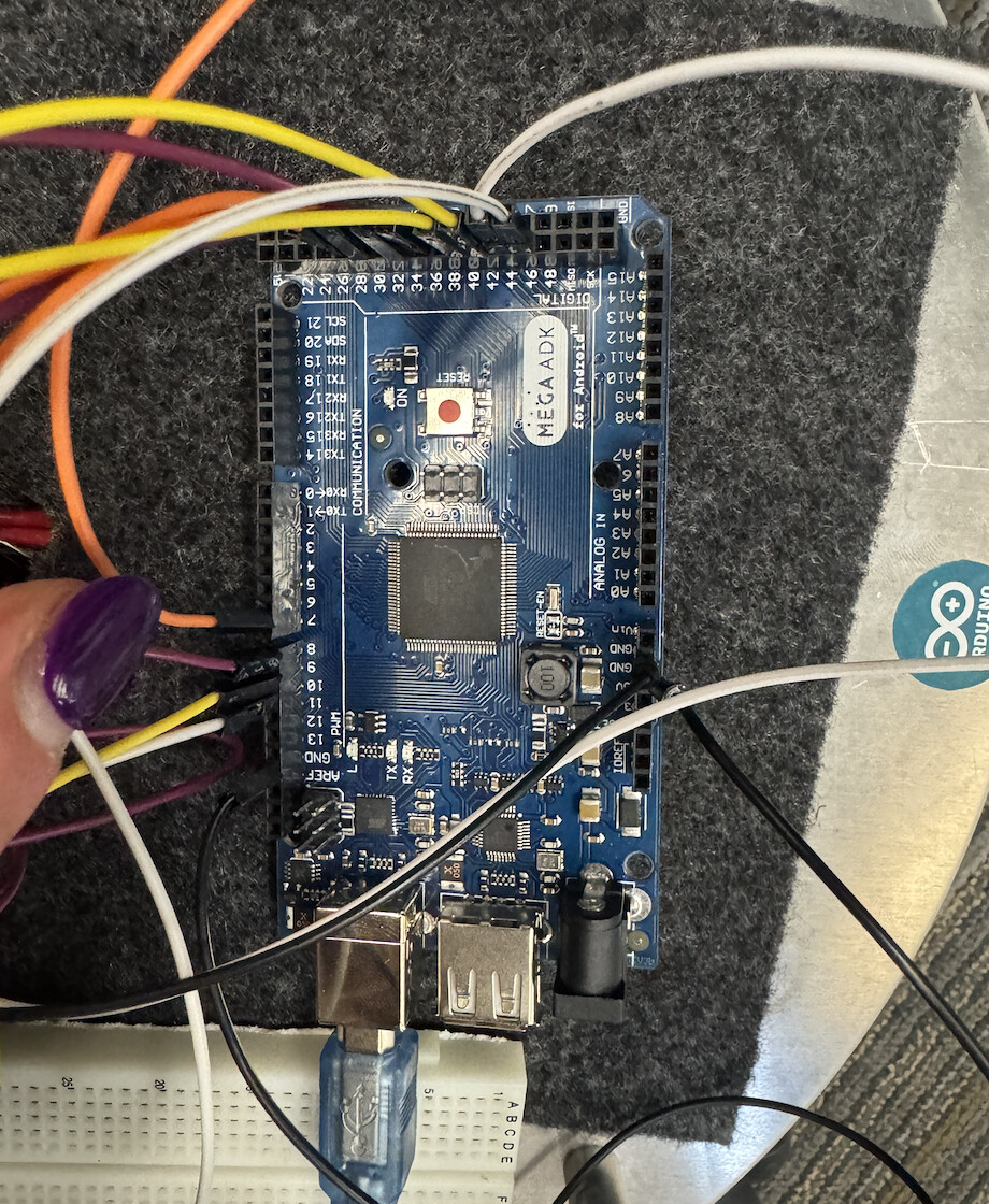 - We ended up switching to an Arduino Mega ADK instead, with pin connections as pictured in the photo below…