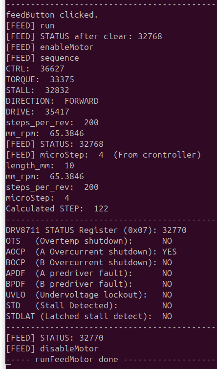 It is connected to a Raspberry PI CM5 module via SPI interface, can read and write to the registers (using DRV8711 standard values but writing 0x0000 to STATUS Register (Address = 0x07) to clear AOCP. Can measure across R2 with a Scop and see that a large current is drawn both with and without motor.