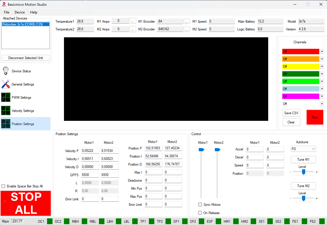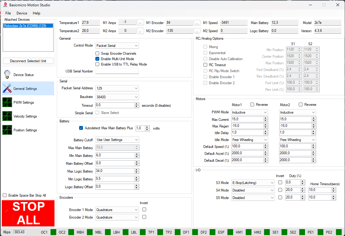 This is how the Roboclaw is configured and calibrated on Motion studio