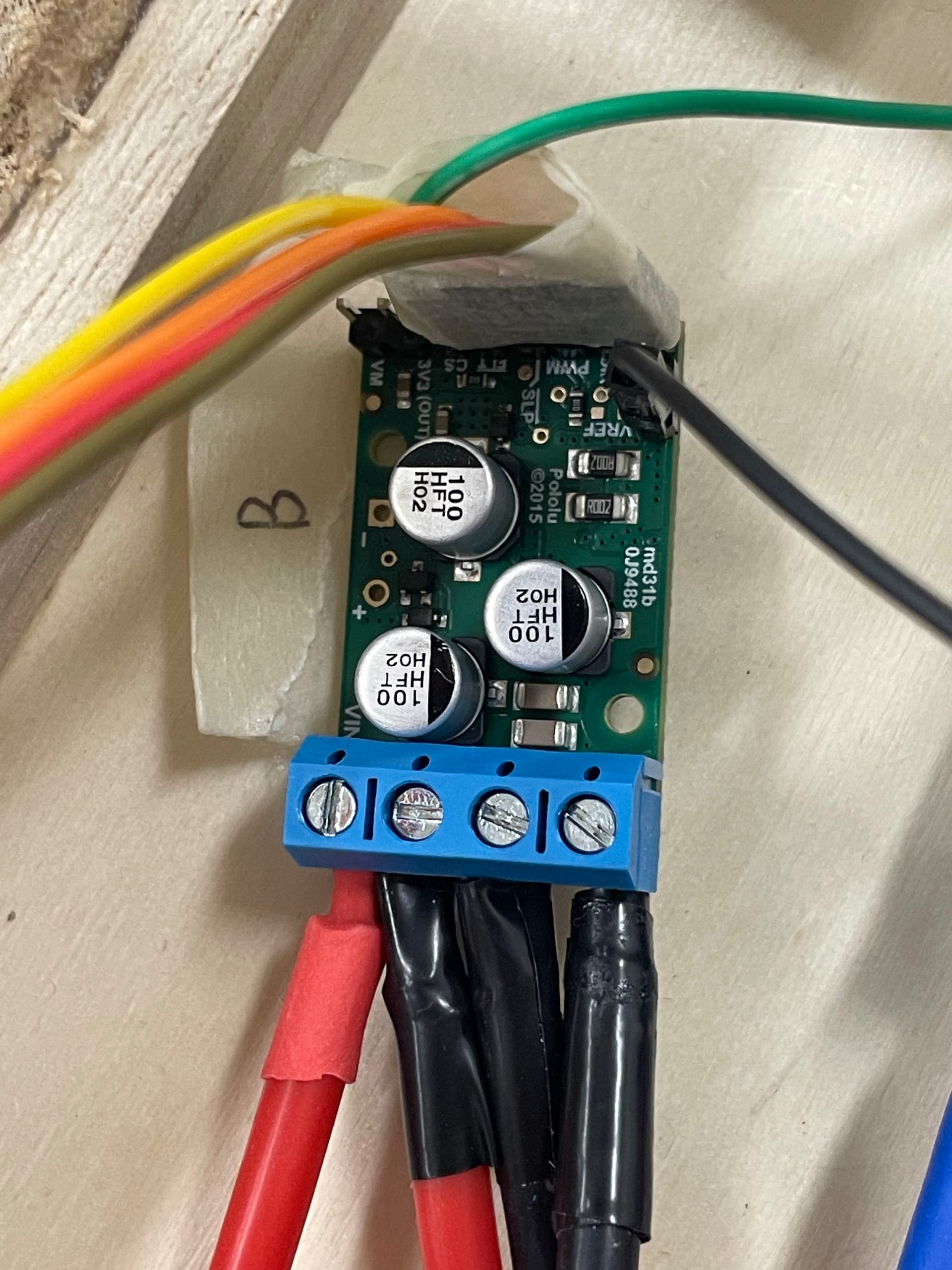 Hello, I’m using a polu24v21 product. I already have 4 broken motor drives… So… I’m writing to ask for advice. I bought this motor drive to run 2 wheelchair motors (24v 350W per each). I have one motor drive in each motor and the motor and battery lines are 12AWG thick wires.